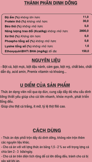 Thức ăn hỗn hợp dạng viên nổi cho cá điêu hồng giai đoạn 20-50g