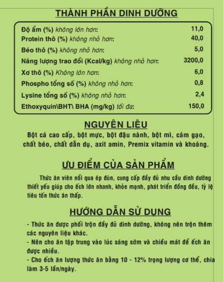 Thức ăn hỗn hợp dạng viên nổi cho ếch giai đoạn trên 150g