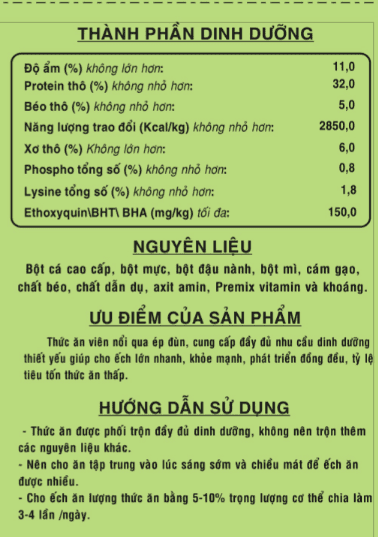 Thức ăn hỗn hợp dạng viên nổi cho ếch giai đoạn trên 150g