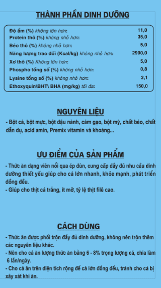 Thức ăn hỗn hợp dạng viên nổi cho cá có vảy giai đoạn trên 500g