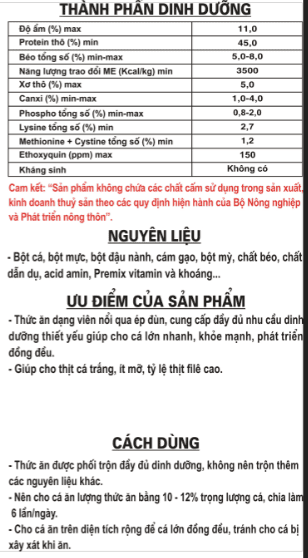 Thức ăn hỗn hợp dạng viên nổi cho cá da trơn (tra, basa) giai đoạn >500g