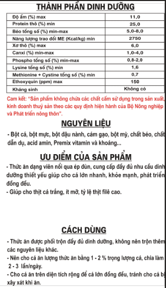 Thức ăn hỗn hợp dạng viên nổi cho cá da trơn (tra, basa) giai đoạn >500g