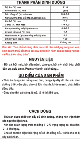 Thức ăn hỗn hợp dạng viên nổi cho cá da trơn (tra, basa) giai đoạn >500g
