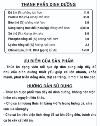 Thức ăn hỗn hợp dạng viên nổi cho cá trắm chép giai đoạn 200-500g