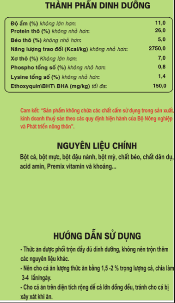 Thức ăn hỗn hợp dạng viên nổi cho cá có vảy giai đoạn 300-500g