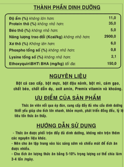 Thức ăn hỗn hợp dạng viên nổi cho ếch giai đoạn trên 150g