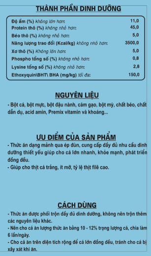 Thức ăn hỗn hợp dạng viên nổi cho cá có vảy giai đoạn trên 500g