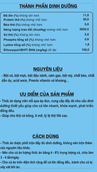Thức ăn hỗn hợp dạng viên nổi cho cá có vảy giai đoạn trên 500g