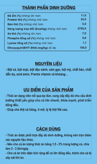 Thức ăn hỗn hợp dạng viên nổi cho cá có vảy giai đoạn trên 500g