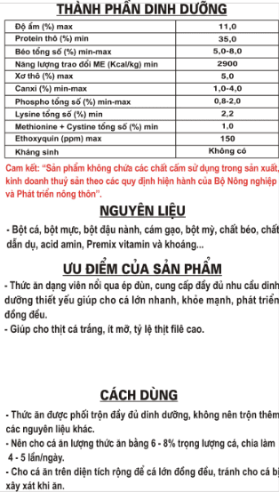 Thức ăn hỗn hợp dạng viên nổi cho cá da trơn (tra, basa) giai đoạn >500g