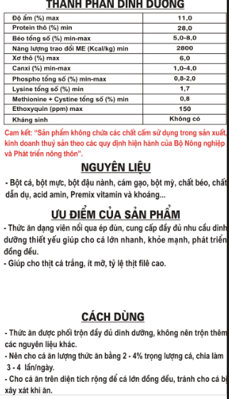 Thức ăn hỗn hợp dạng viên nổi cho cá da trơn (tra, basa) giai đoạn >500g