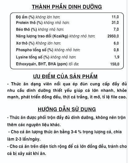 Thức ăn hỗn hợp dạng viên nổi cho cá trắm chép giai đoạn 50-200g